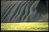 Unten am Fluß, die vielphotographierten, parallel geschwungenen Erosionsformen im verfestigten, schwarzen Lavasand. Kurz darauf die erste nennenswerte Furt im engen Tälchen, das sich dann wieder zu einem weiten Talboden öffnet. Nach links geht es zum Kirkufellsvatn. Auf der anderen Talseite komme ich dann an die auch in der Karte eingezeichnete Furt am Kirkjufell. Das zweite Fußbad heute. Am anderen Ufer setze ich mich auf ein Moospolster und mache eine kleine Sonnenpause. Das Wandern ist heute Morgen der reinste Genuß. Dann ein über einen kleinen Rücken hinweg und unter dem Kirkjufell entlang weiter nach Westen. Nun ist doch ein frischer Nordwestwind aufgekommen und die ebene, nun weniger abwechslungsrteiche Straße zieht sich - wie so oft auf den vermeintlich "kurzen" Etappen.