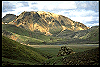 Das Wetter hat sich seit gestern wirklich gebessert und um 8:00 Uhr bin ich wieder auf der abwechslungsreichen und sonnigen Piste. In einer Stunde etwa rechne ich mit dem ersten Verkehr aus Richtung Landmannalaugar. Wie üblich werden es 2 - 3 Busse sein die zum nächsten Highlight hetzen müßen. Kurz vor dem Kirkjufell Blick einen kurzen aber steilen Hang hinunter in das Tal Illagil, in dem die Piste wieder zu sehen ist. Ich spare mir den Umweg und steige direkt in das Tal ab.