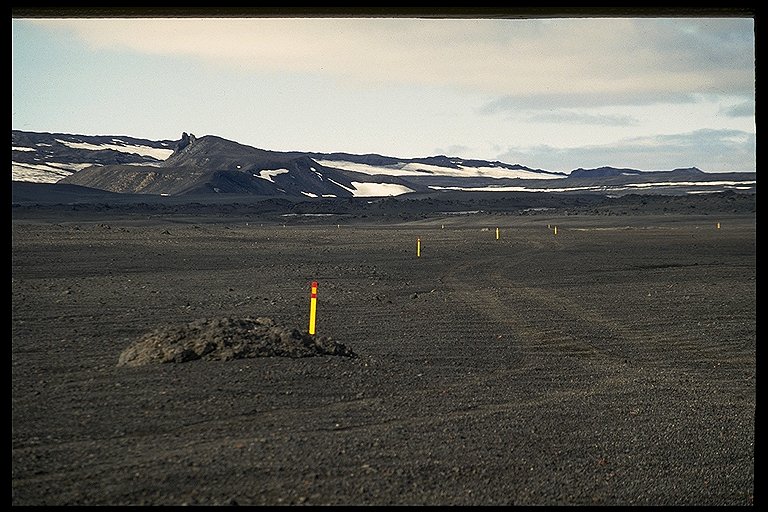 Gęsavatnaleiš syšri am Dyngjuháls. Die Piste wurde am Tag voher neu markiert.