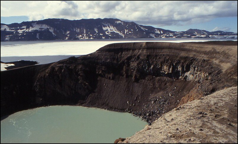 Askja - der noch weitgehend von Eis bedeckte Öskjuvatn und der Karter Viti