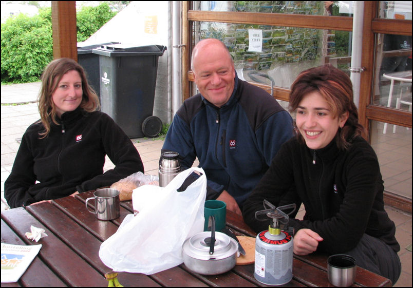Frühstück mit Daniela (Hüttenwartin von Hveravellir) und "rotekirsche" Anne auf dem Camingplatz in Reykjavík