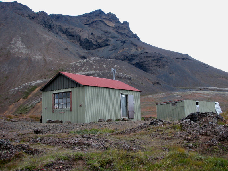Bemerkungen: | Einfache, leider wenig gepflegte Hütte, ohne besonderen Charme. Wird öfters von Reitergruppen benutzt. Keine Wasserversorgung! Nur im Frühsommer, wenn noch Schnee auf den Hlöšufell liegt, kann man am Berghang eventuell Wasser finden. Das in einer Tonne gesammelte Regenwasser des Stalldaches ist wenig einladend und wohl nur für die Pferde bestimmt. |