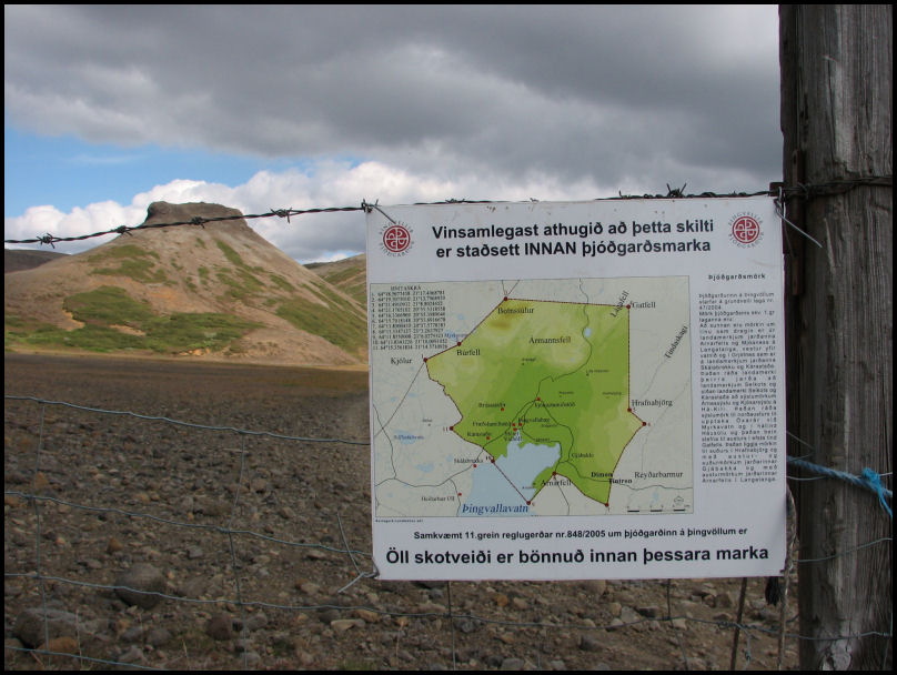 Schild am Hófmannaflöt: Alle Jagd ist innerhalb dieser Grenzen verboten!