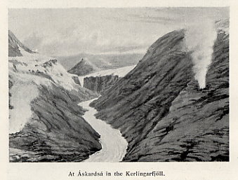 a deep-cut riverbed (Áskardsá) wends its way out to