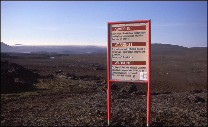 Der Weg nördlich vom Hofsjökull Gletscher ist gefährlich wegen starker Strömung der Gletscherflüsse und Quicksand
