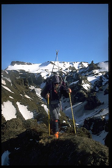 Abstieg in die Žórsmörk über den schmalen Grat des Kattarhryggur.
