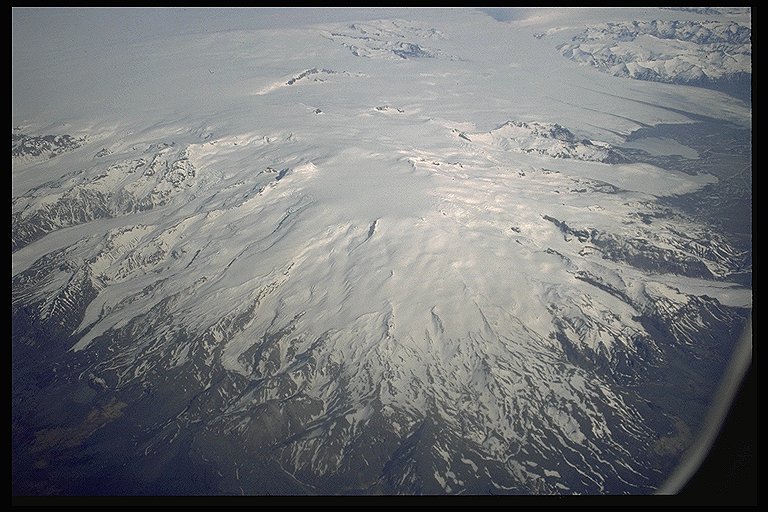 Blick vom Flugzeug auf Islands höchsten Berg, den Öræfajökull