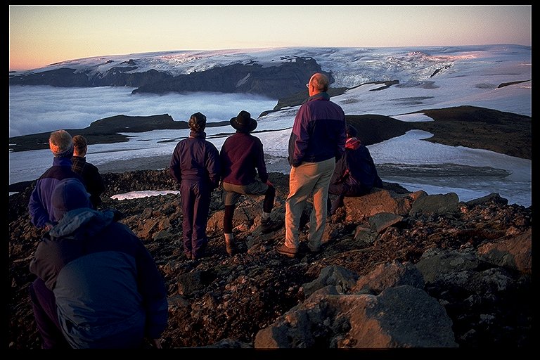 Blick um 22:00 Uhr vom Fimmvörðuháls zum Mýrdalsjökull