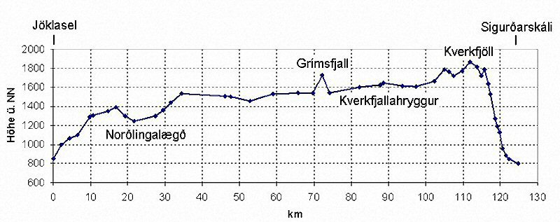 Höhenprofil der Tour auf Basis der aufgenommenen GPS-Wegpunkte